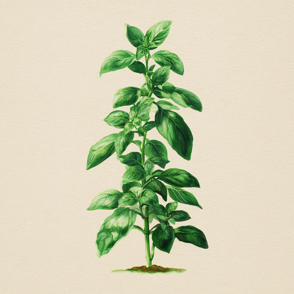 Have seeds for this? Add to inventory →Basil is one of the most valuable companion plants in the vegetable garden, repelling aphids, whiteflies, and thrips with its volatile aromatic oils. It thrives in warm, sunny conditions and grows symbiotically alongside tomatoes.