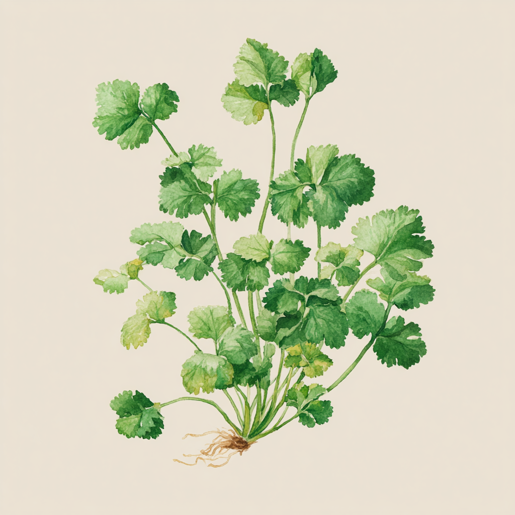 Coriander appears in ancient Ayurvedic texts as both a cooking spice and a cooling digestive. In Indian cuisine, ground coriander seed became one of the foundational spices of dal, curry pastes, and spice blends. The fresh leaf, called dhania, functions separately as a garnish herb across South and Southeast Asian cooking - botanically the same plant used in entirely different ways.