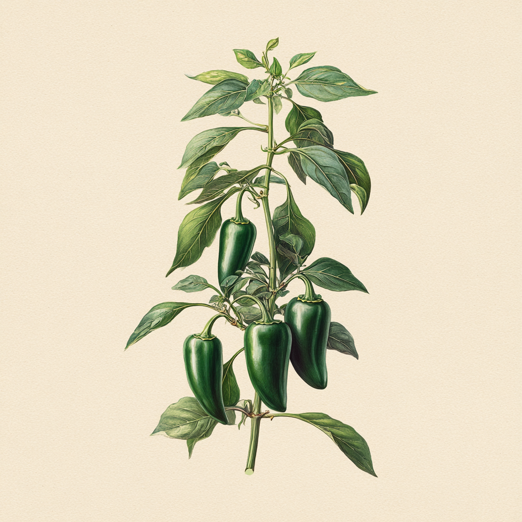 Have seeds for this? Add to inventory →Jalapeño peppers are prolific warm-season producers of medium-heat fruit used fresh, pickled, or roasted. They share the same cultivation requirements as sweet peppers but are slightly more heat-tolerant.