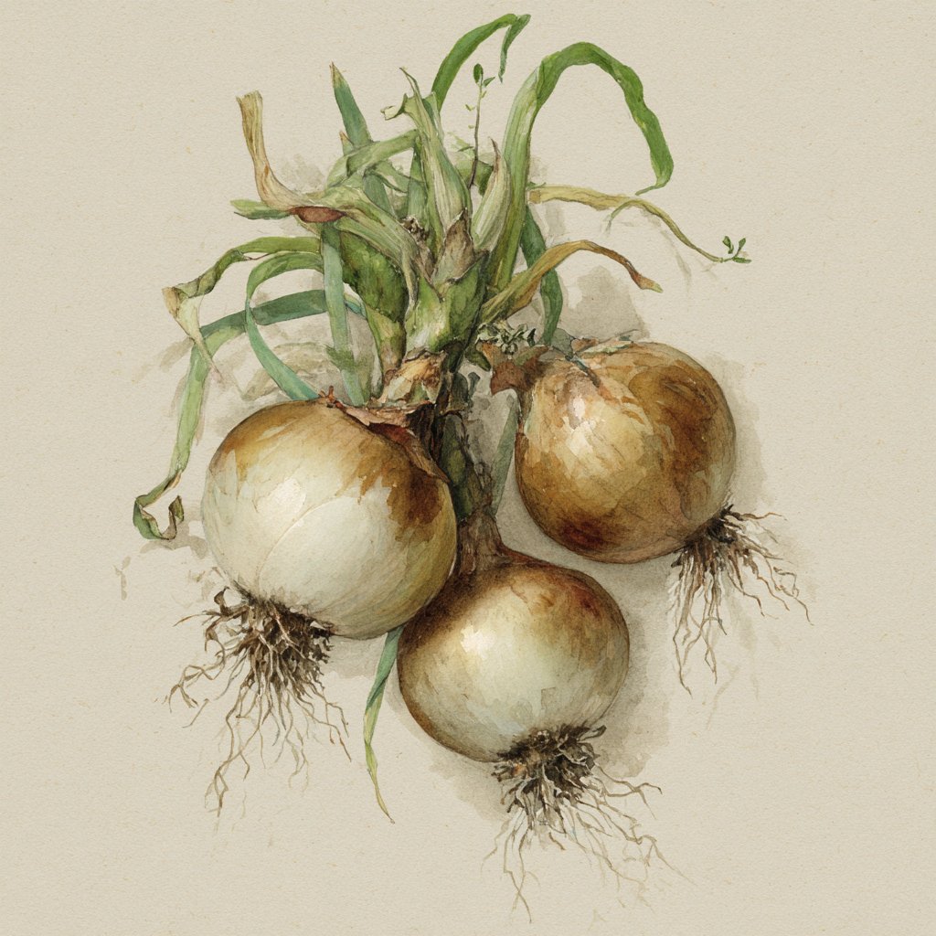 Onion has been documented as a cultivated food plant since the earliest written records. Its preservation qualities, pungency, and year-round storage made it one of the most strategically important food crops in the ancient world - valued alongside garlic and leek as the foundational trio of alliums.