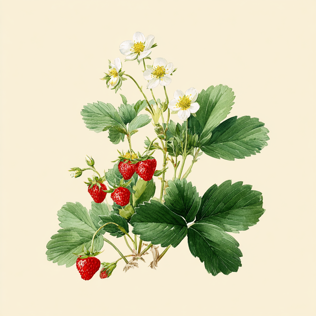 Medieval Wood Strawberry (Fragaria vesca) - Fruit and leaves