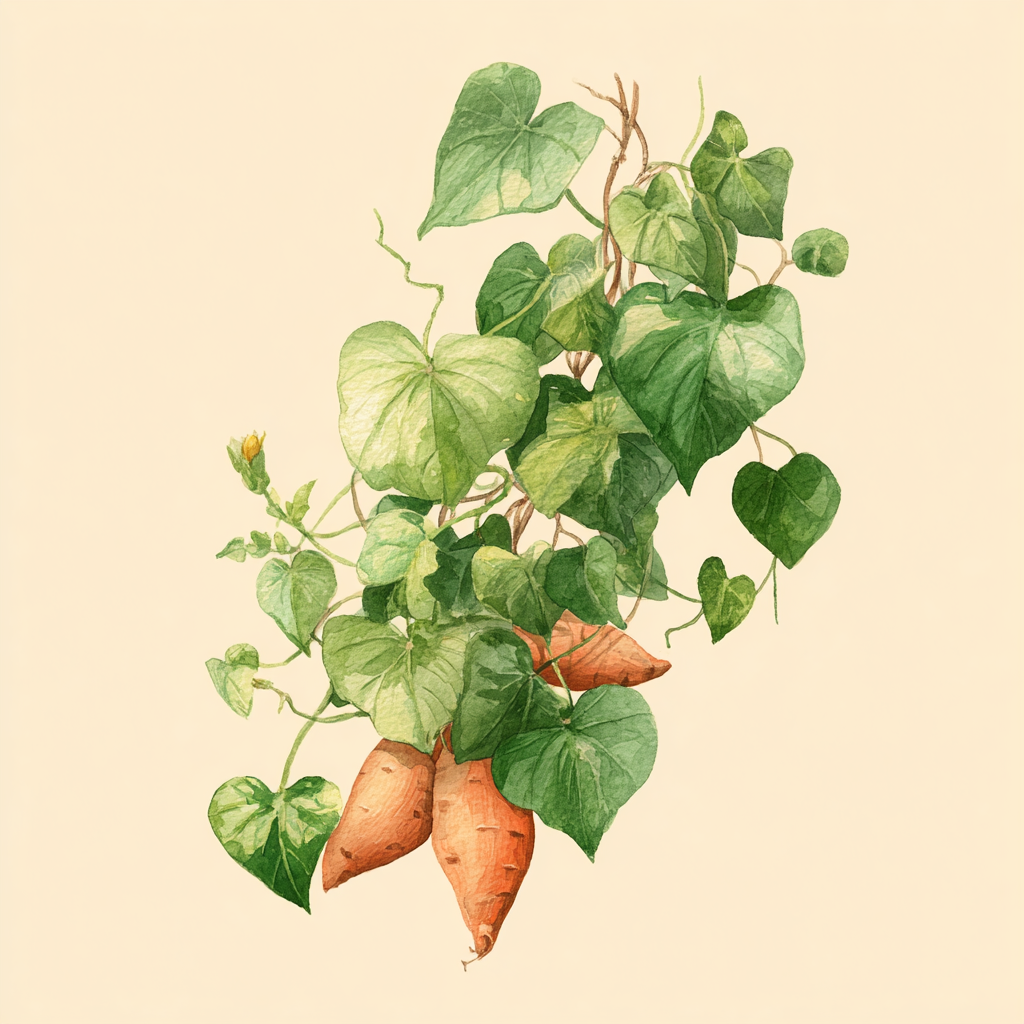 Have seeds for this? Add to inventory →Sweet potatoes are warm-season vines grown for their sweet, nutritious tubers. They thrive in hot summers and are grown from slips rather than seeds, spreading vigorously as ground cover.